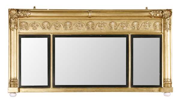 REGENCY STYLE PARCEL GILT TRIPTYCH OVERMANTLE MIRROR