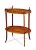 the oval top with a pierced brass gallery, raised on boxwood strung out swept legs, united by an under tier