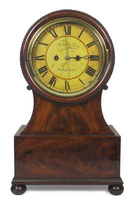 LARGE MAHOGANY MANTEL CLOCK, SIGNED WILLIAM BARR, HAMILTON