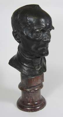 modelled as a gentleman, inscribed to the reverse 'Cie des Bruges, Bruxelles (cire perdue)', raised on a mottled marble socle base