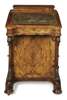 the raised superstructure above a writing slope opening to reveal a satinwood fitted interior, over four graduated drawers to one side and opposing dummy drawers, raised on bun feet