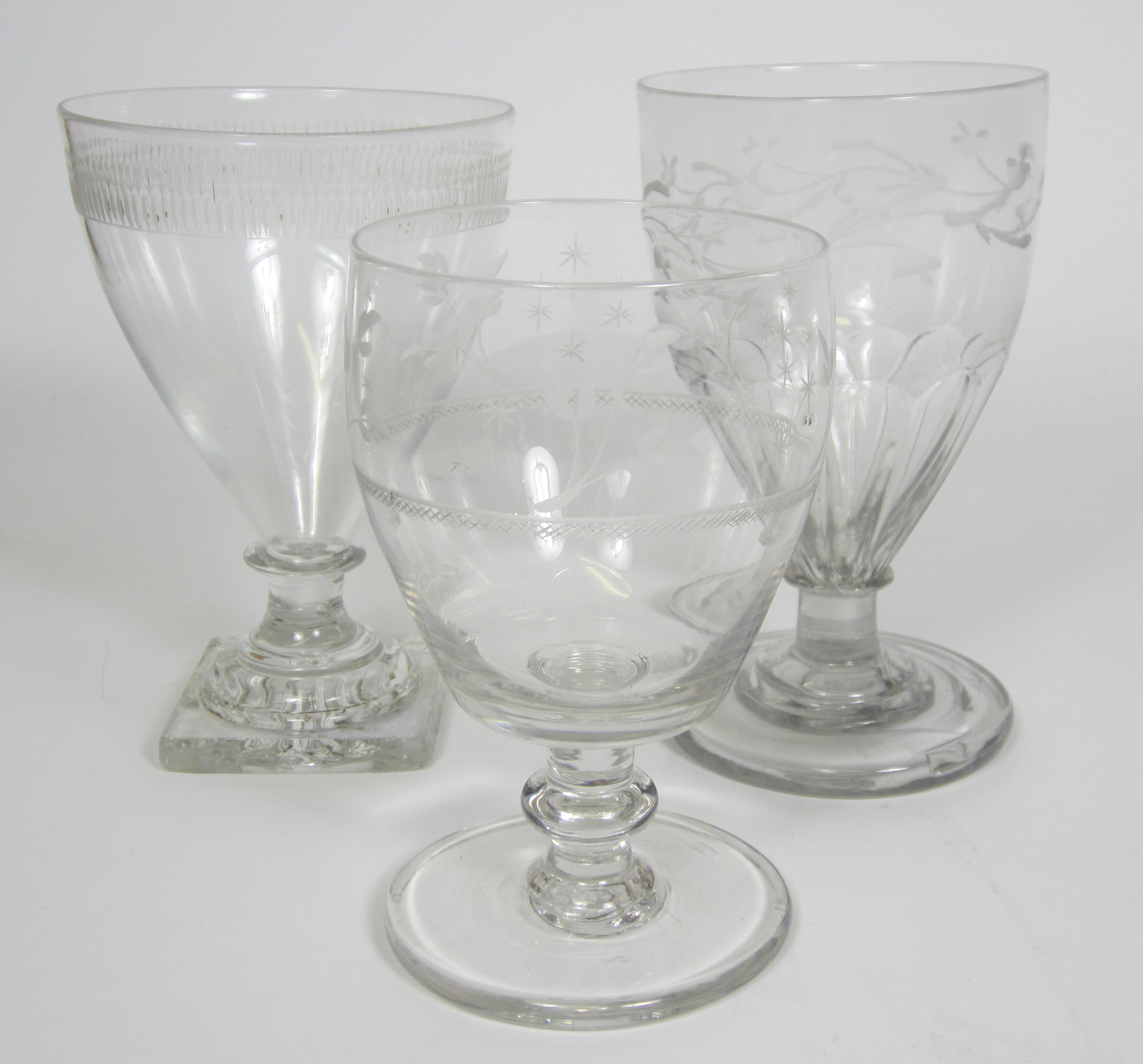 COLLECTION OF ETCHED AND CUT GLASS RUMMERS
