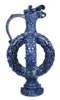 of double ringkrug design, with a spout modelled as an eagle's head above a pair of bearded knomes, decorated with flower heads, lions and a crest in blue relief on a grey ground, with indistinct writing to spout interior and incised '231' to underside