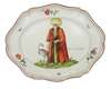 of shaped oval form, painted with a robed Turkish figure accompanied by a flamingo, with the inscription 'Turco con Fenicottero', within a red border with flower sprigs