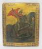 the painted and gilded wooden panel depicting St. George and the dragon, within a decorative border with an inscription
