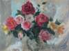 A STILL LIFE OF PINK AND YELLOW ROSES
