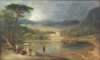 LANDSCAPE WITH TEMPLE RUINS AND FISHERMAN IN THE FOREGROUND