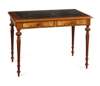 the moulded rectangular top with an inset writing surface above two frieze drawers and two opposing dummy drawers, raised on turned fluted legs