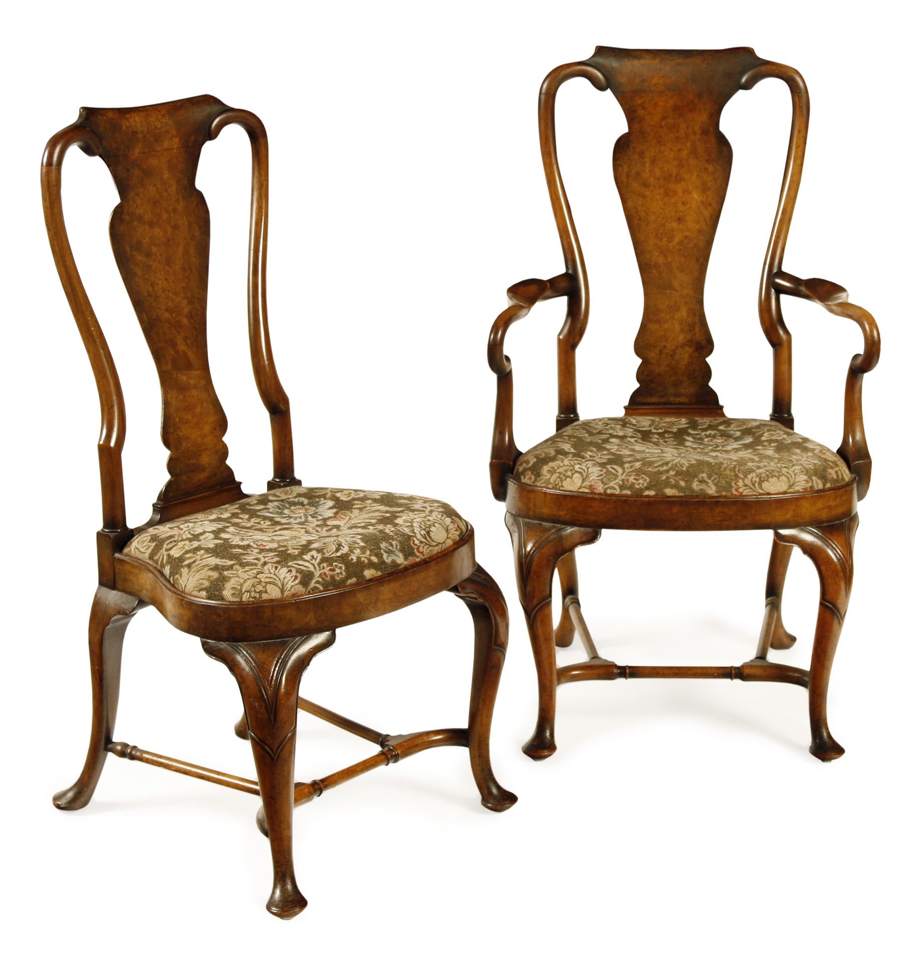 SET OF SIX QUEEN ANNE STYLE WALNUT DINING CHAIRS