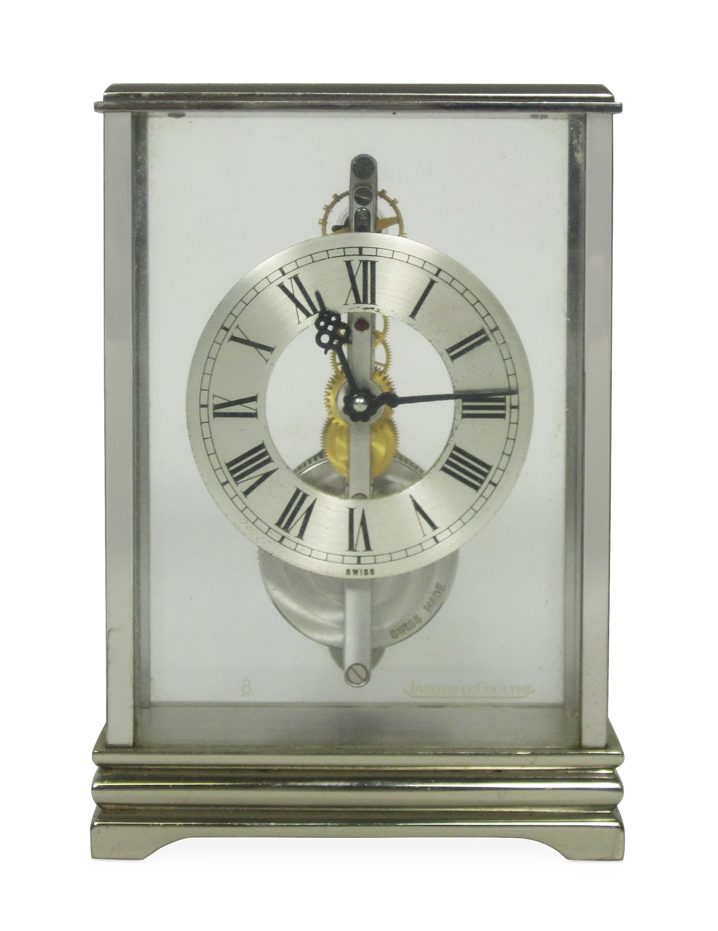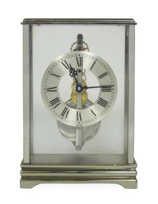 the glazed silvered case enclosing a silvered dial with Roman numerals and a brass and silvered movement, with maker's marks to case