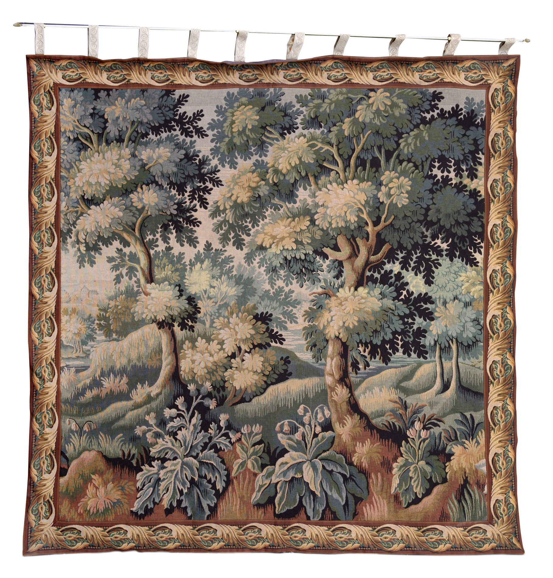 of square form, depicting trees within a landscape setting, with hanging loops