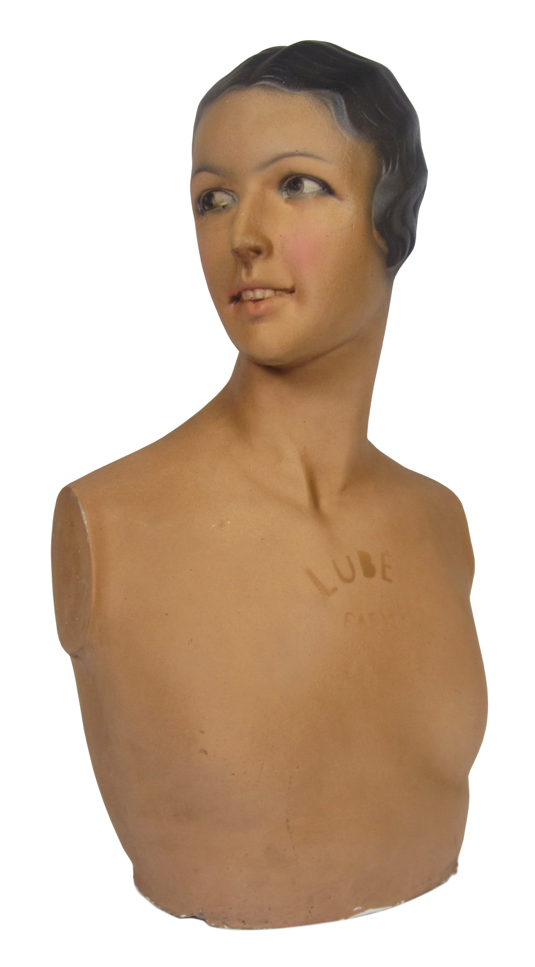 FRENCH ART DECO PAINTED PLASTER BUST, BY LUBÉ, PARIS