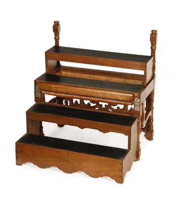 DUTCH OAK GOTHIC STYLE METAMORPHIC LIBRARY STEPS, STAMPED HORRIX, GRAVENHAGE