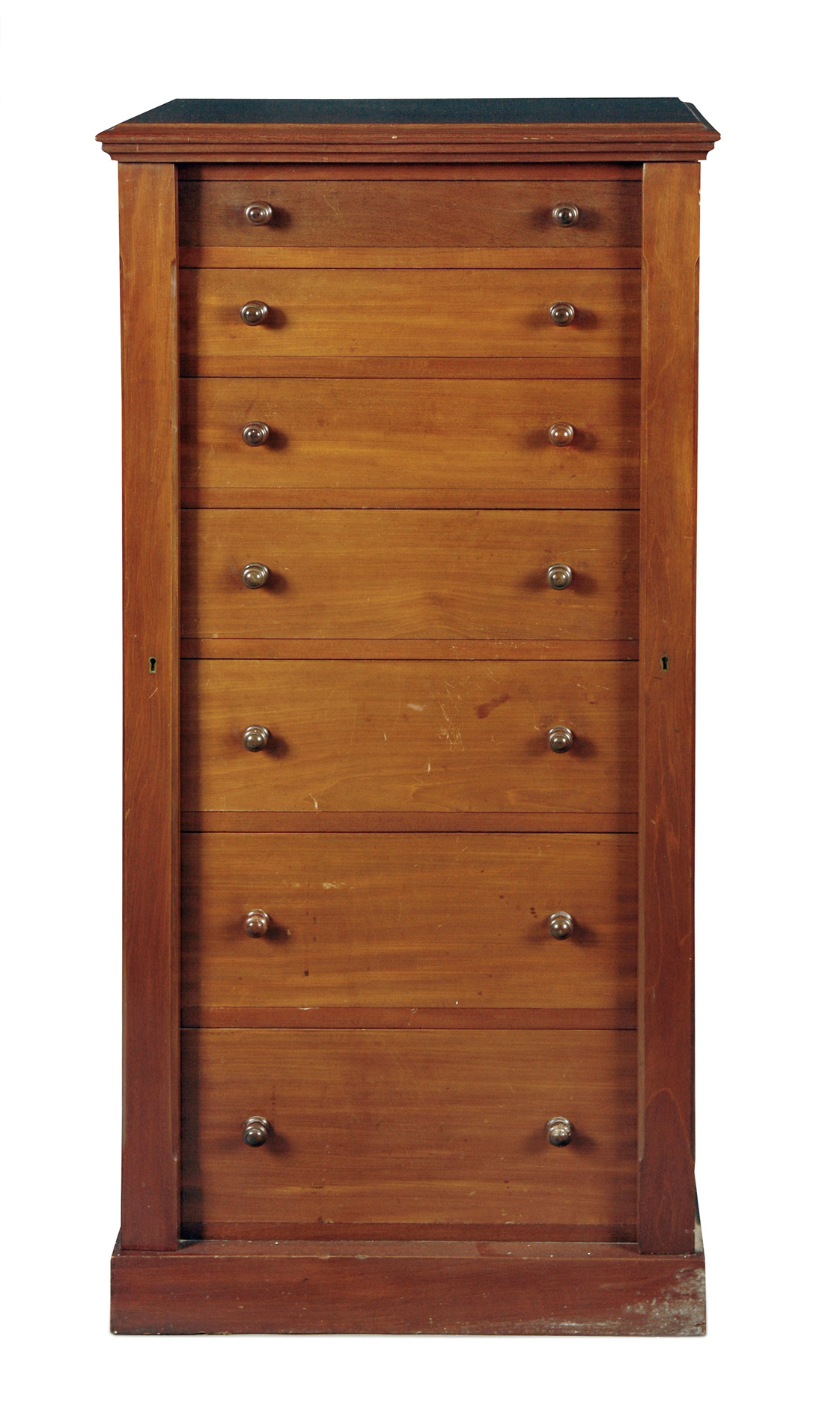VICTORIAN MAHOGANY WELLINGTON CHEST, STAMPED CHALMERS AND SCOTT, EDINBURGH