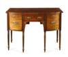 the D-shaped top above a frieze drawer and two deep drawers flanking an arch, on reeded tapering legs with toupee feet