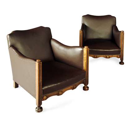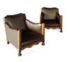PAIR OF ARTS AND CRAFTS STYLE FAUX LEATHER ARMCHAIRS