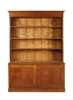 the moulded cornice above adjustable shelves, over panel doors, raised on a plinth base