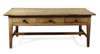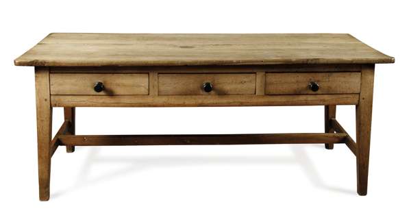 the rounded rectangular top above three frieze drawers, raised on square tapering legs, united by stretchers, with two extensions