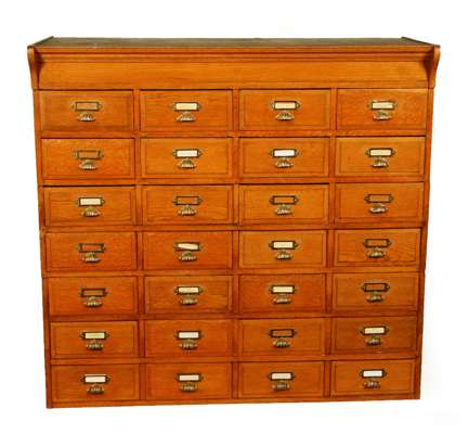 of rectangular form, with four banks of seven drawers