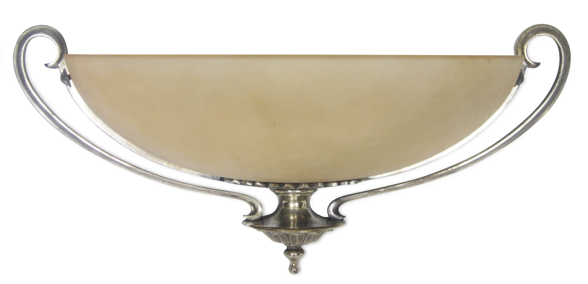SET OF FOUR GLASS AND BURNISHED METAL WALL LIGHTS