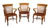 the shaped top rail above a comb back and out swept arms, over a solid seat, raised on cabriole legs, united by stretchers (3)