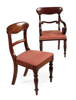 the shaped back above a horizontal splat and pad seat, raised on turned legs, including one open arm chair (one A/F) (15)