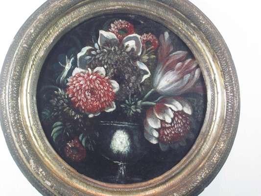 Inscribed 'Lady Evelyn Mason' verso, oil on board, roundel