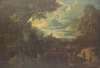 AN ITALIANATE LANDSCAPE WITH WATER BEARERS NEAR A MOUNTAINSIDE LAKE