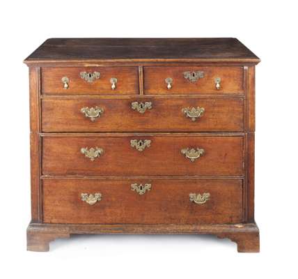 the top with a moulded edge above two short and two long graduated drawers, on bracket feet