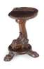 the solid saddle-shaped seat, raised on a scroll with a stylised lion mask column and a circular platform base, terminating in paw feet, bearing a label for Edwards & Roberts