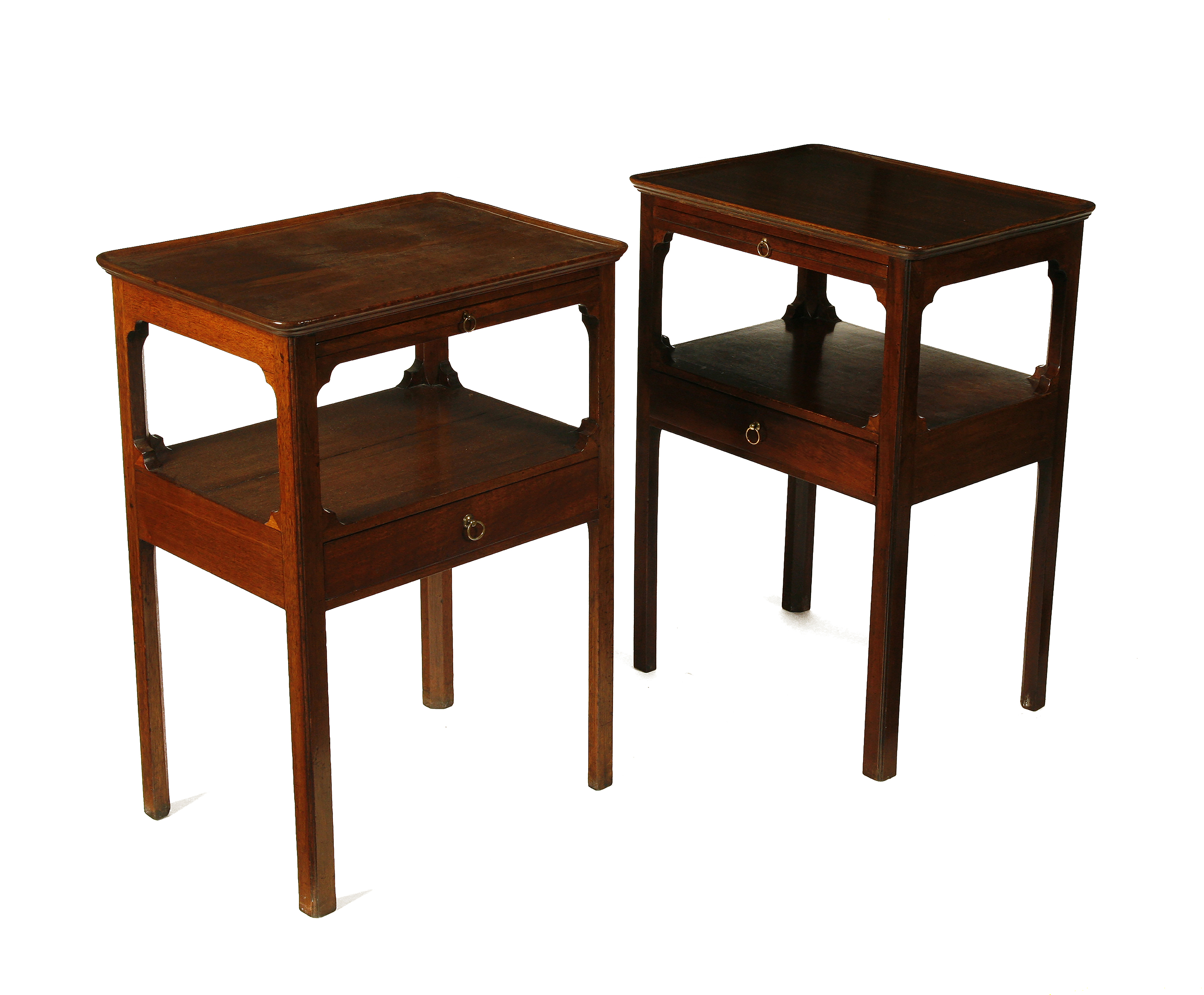 one George III, the other later, each with a rectangular top fitted with slides and a drawer, raised on square moulded legs (2)