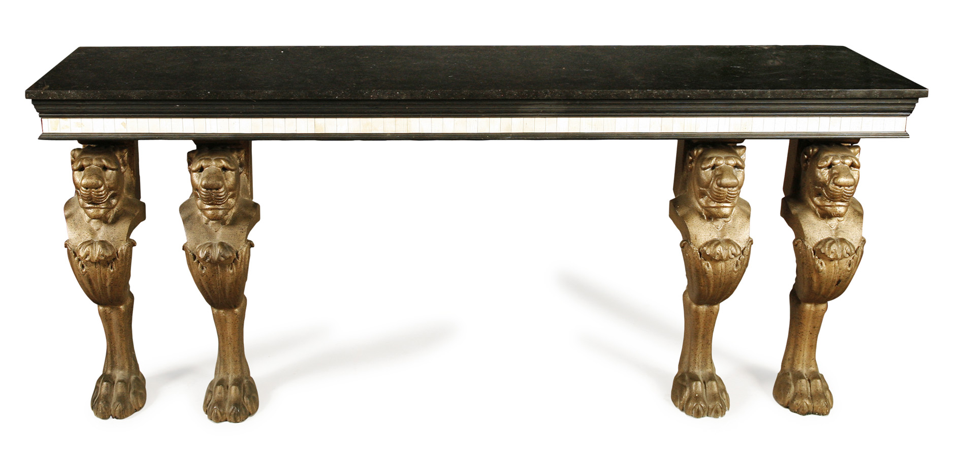 the rectangular top above an ivory frieze, raised on moulded legs with lion masks and paw feet