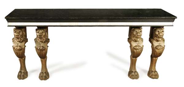 MARBLE TOPPED GILTWOOD AND EBONISED CONSOLE TABLE, BY ANTHONY REDMILE