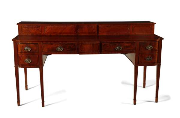GEORGIAN MAHOGANY AND EBONY STRUNG SIDEBOARD