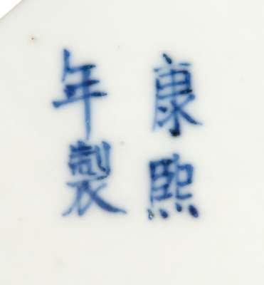 of globular form with domed covers, decorated with prunus boughs against a cobalt ground, underglaze blue four character Kangxi mark but later (2)