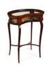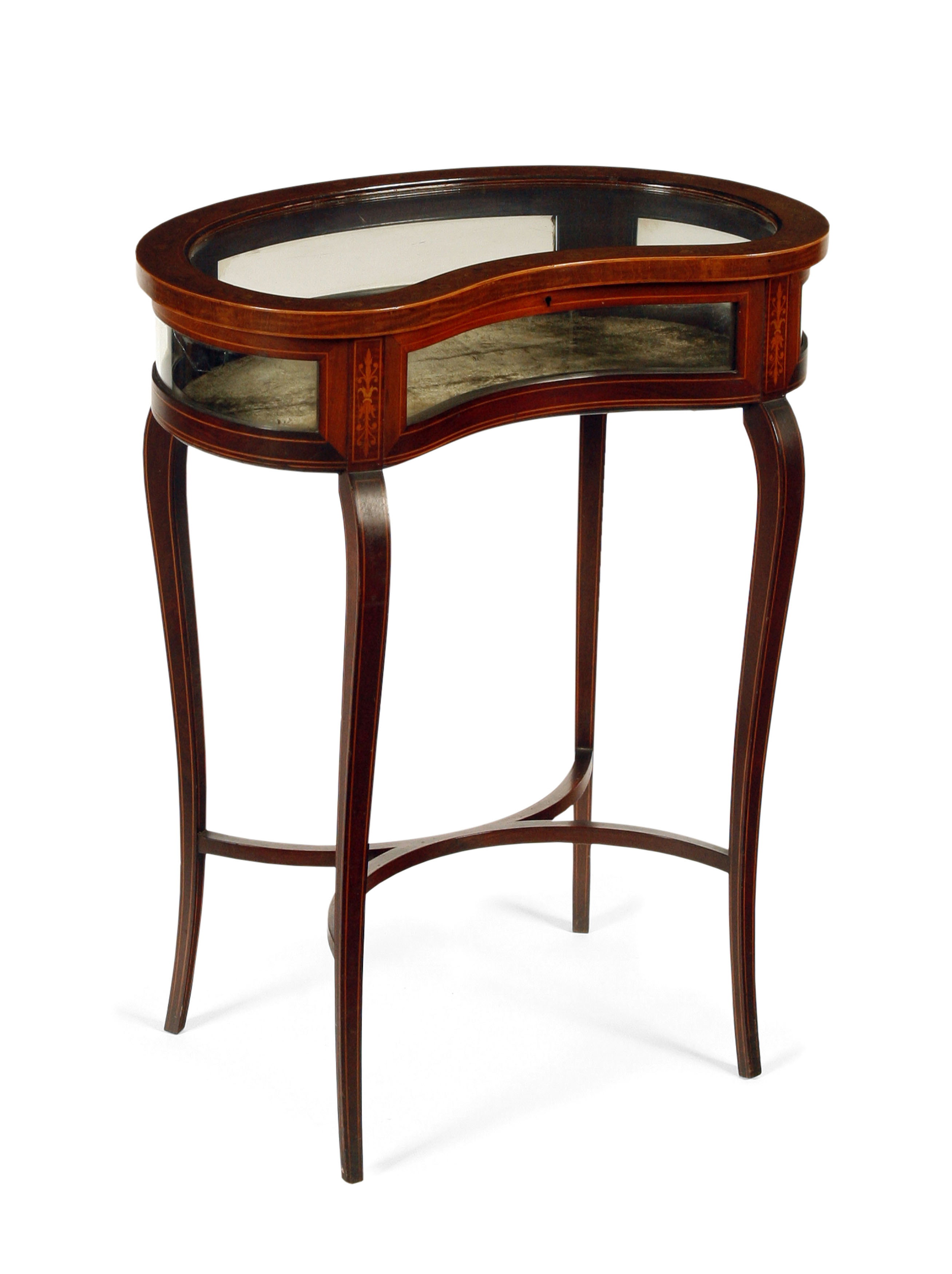 EDWARDIAN KIDNEY SHAPED MAHOGANY AND MARQUETRY BIJOUTERIE TABLE