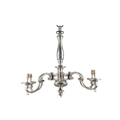 SILVERED BRASS SIX BRANCH CHANDELIER