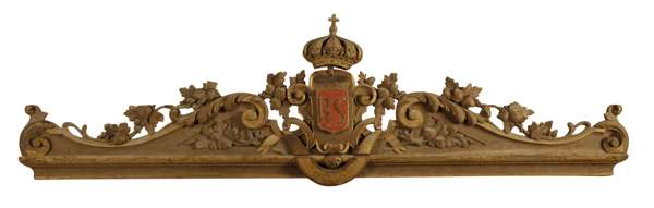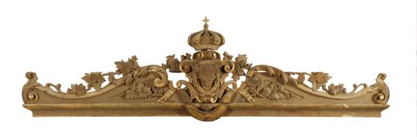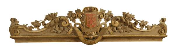FOUR CARVED OAK AND PARCEL GILT PELMETS