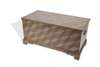 with geometric design, the moulded rectangular top opening to reveal a void interior, above a plain frieze, raised on bracket feet, with metal carrying handles on either side