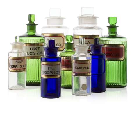 COLLECTION OF GLASS PHARMACY BOTTLES