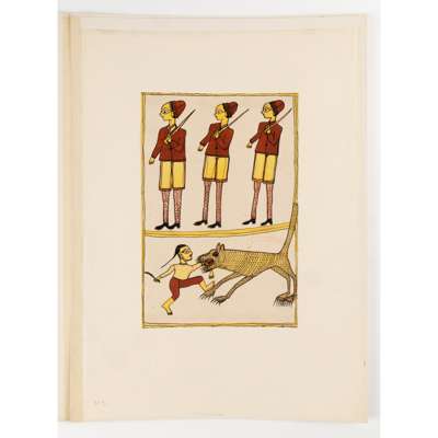 A SANTAL PRIEST LOLLING ON AN ELEPHANT, SANTAL CHIEF RIDING, AND THREE OTHER JADUPATUA SCROLL SECTIONS