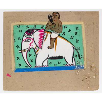 one depicting a rider on elephant, gouache on paper laid down on card; the other with two-sided sketches, one side with Krishna playing the flute, the other with a portrait of a woman, gouache on card