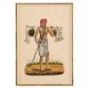 watercolour and ink on paper, a rabbit hunter carrying his kill on a pole across his shoulders and leaning on a staff in a landscape, wearing a red turban and white dhoti, no watermark, mounted