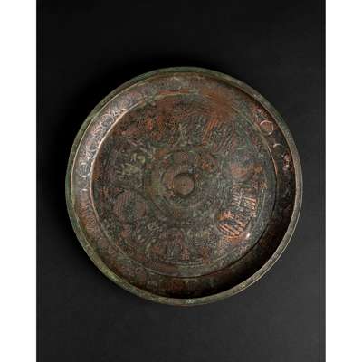 A RARE TIMURID TINNED-COPPER DISH WITH THE TWELVE SIGNS OF THE ZODIAC