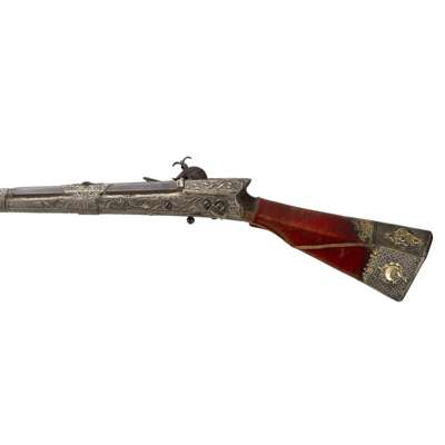 A FINE OTTOMAN SILVER-GILT MOUNTED FLINTLOCK RIFLE