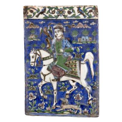A PAIR OF QAJAR MOULDED POTTERY TILES