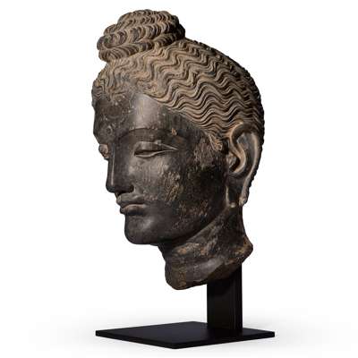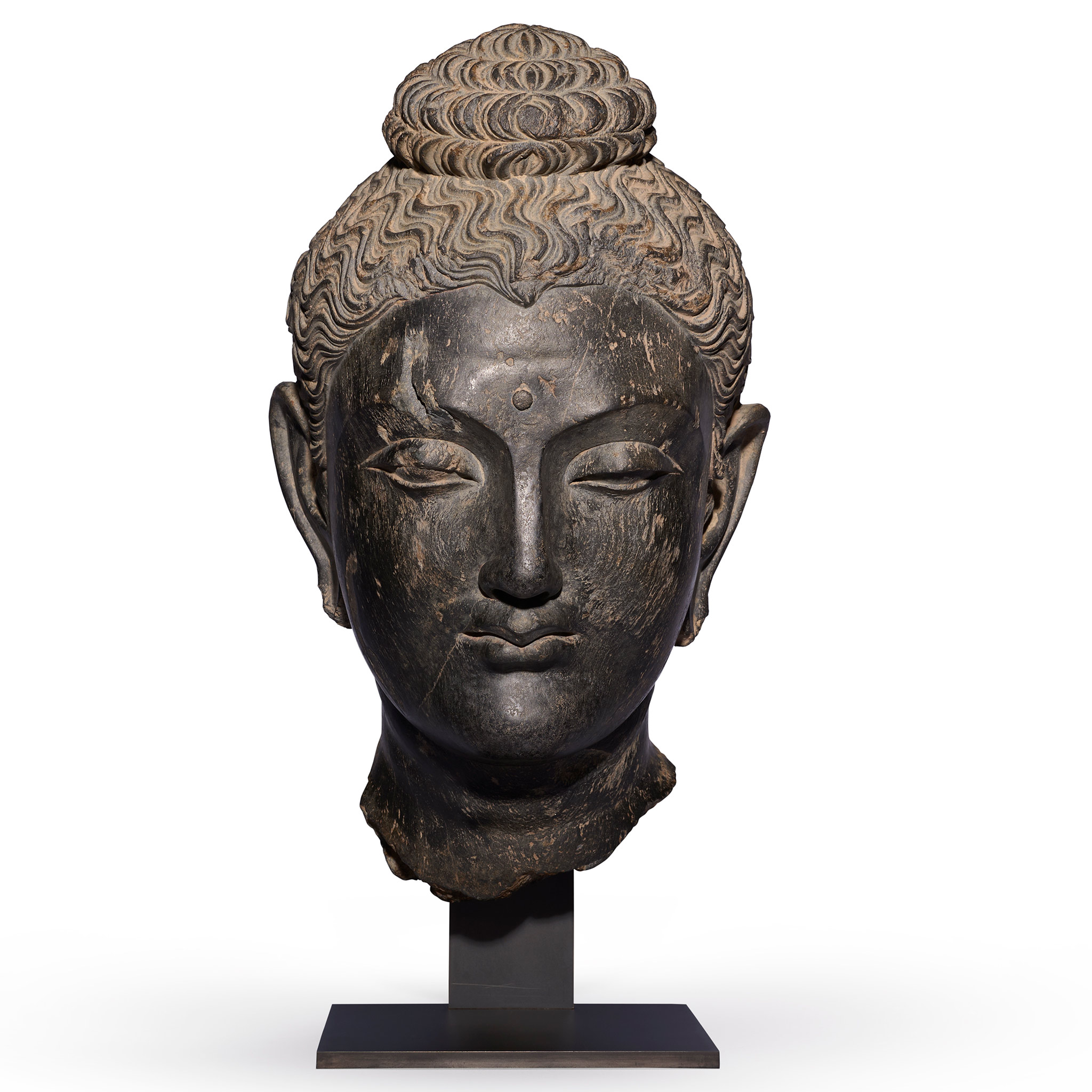 AN OVERLIFE SIZED FINE GREY SCHIST HEAD OF BUDDHA ‡