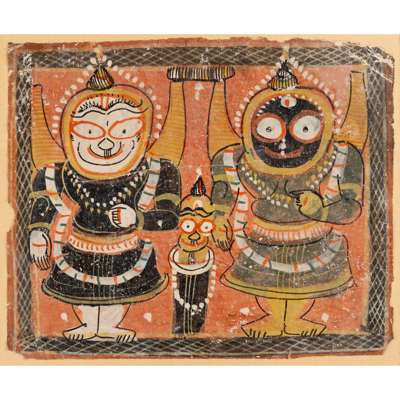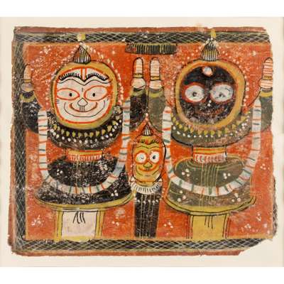 FOUR SMALL JAGANNATH TRIO PAINTINGS