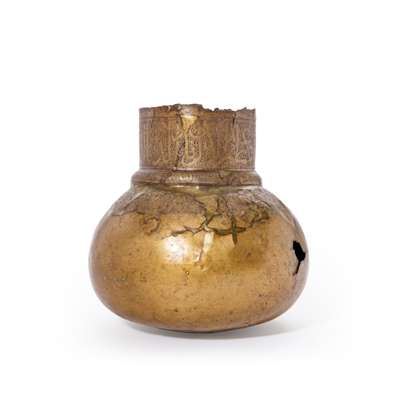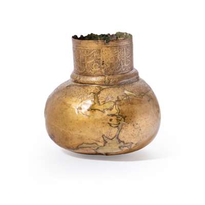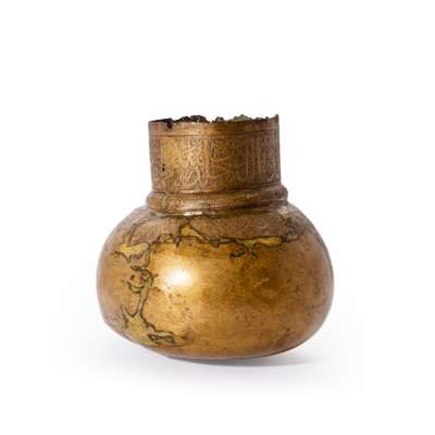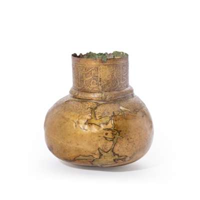 Whilst this flask is fragmentary and in a poor state, the inscriptions written in elegant thuluth against a scrolling leafy vine background are rare as they contain the words ‘made for’ and the name of a ruling sultan.