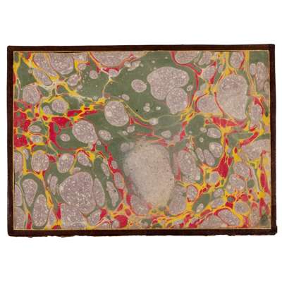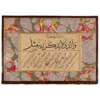 with nine diagonal lines in naskh script, and a wide panel in thuluth script above, gold rules, mounted on polychrome marbled card